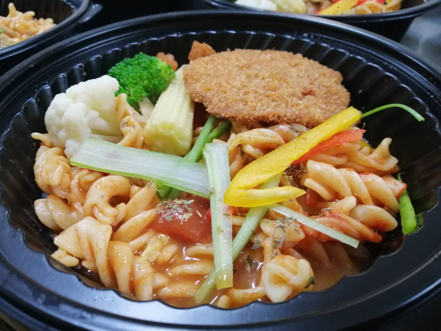 成分:螺旋麵、奶油、鮮奶油、起士、馬鈴薯、水、糖、鹽巴、杏鮑菇、香菇、咖哩、綠花耶菜、白花椰菜、玉米筍、黃金酥炸排、起士絲